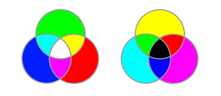 “With additive color mixing, mixing all colors produces white. With subtractive color mixing, mixing all colors produces black.” [6]